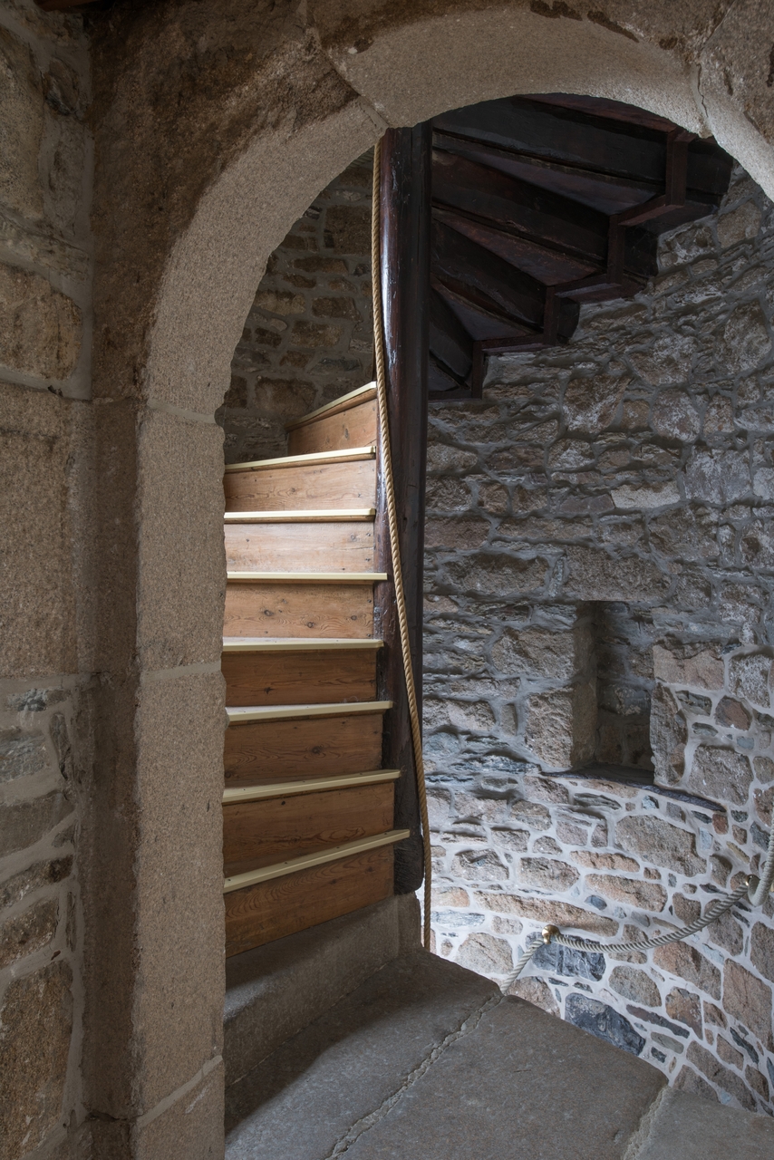 Tréguier, 6 Place du Général de Gaulle : maison d'armateur actuellement "pharmacie des Quais", escalier en vis en pierre de taille puis en bois. A droite, petite niche à lumièreImmatriculation