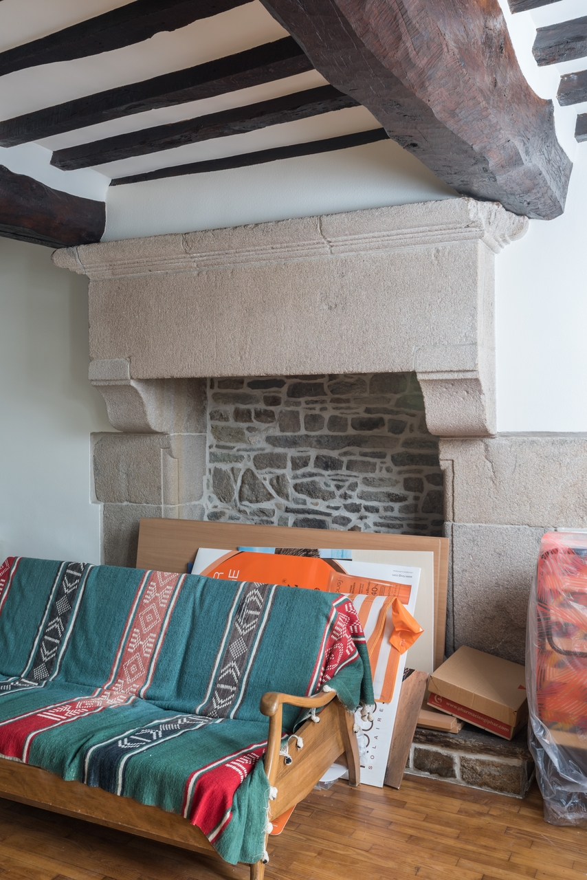 Tréguier, 6 Place du Général de Gaulle : maison d'armateur actuellement "pharmacie des Quais", premier étage, côté Jaudy (mur nord), cheminéeImmatriculation