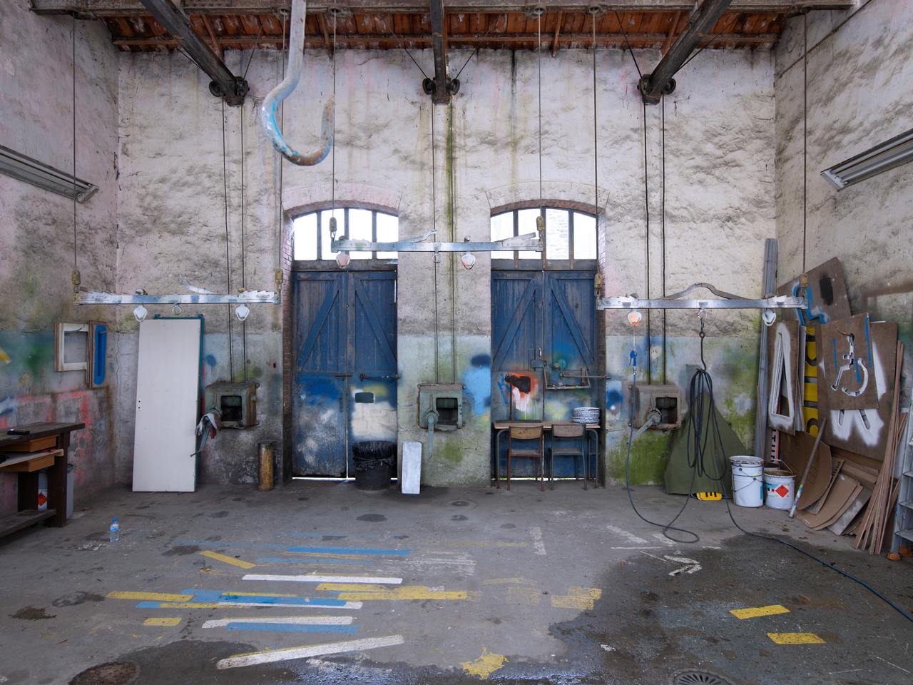 Tréguier, rue du Guindy : abattoir public municipal, halle, vue intérieure, portes extérieures, treuils de levage manuelImmatriculation