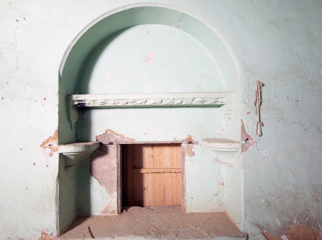 Corps de logis. Premier étage. Détail du passe-plat faisant vaisselier, à décor de rinceaux de vigneImmatriculation