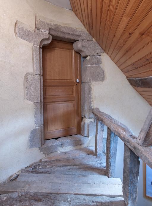 Tréguier, 22 rue Colvestre : manoir urbain dit "Maison de Jean V", palier des combles, porte à linteau sur coussinet donnant sur la "chambre sous charpente"Immatriculation