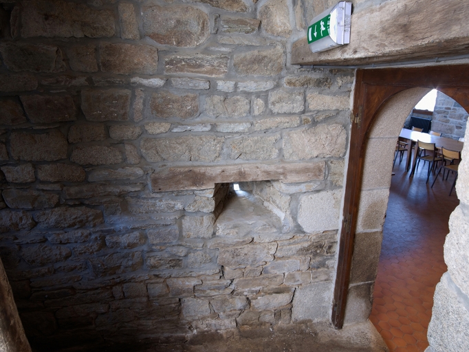 Aile nord. Tourelle d'escalier ouest, rez-de-chaussée : ouverture de tir orientée vers la porte ouestImmatriculation