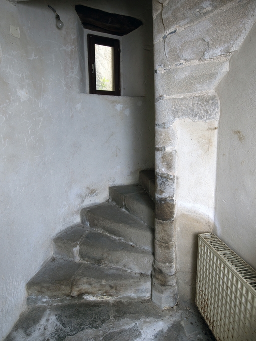 Tréguier, 13 rue Colvestre : manoir urbain dit "Maison des Trois Avocats", escalier en vis desservant les étagesImmatriculation