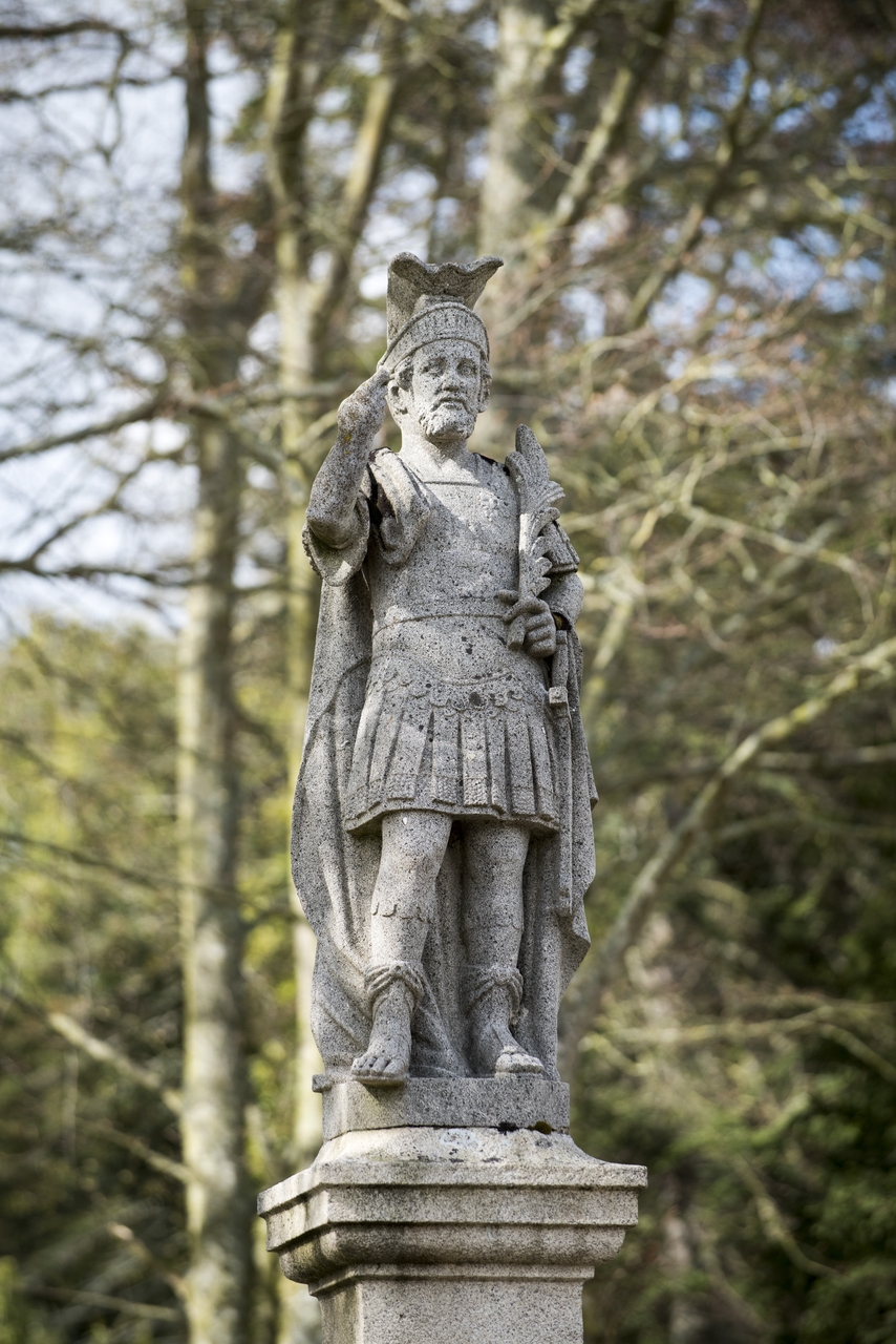 Tréguier, rue Marcellin Berthelot - Parc de la Baronnais : calvaire de Réparation, détail de la statue de saint Longin en centurion romainImmatriculation