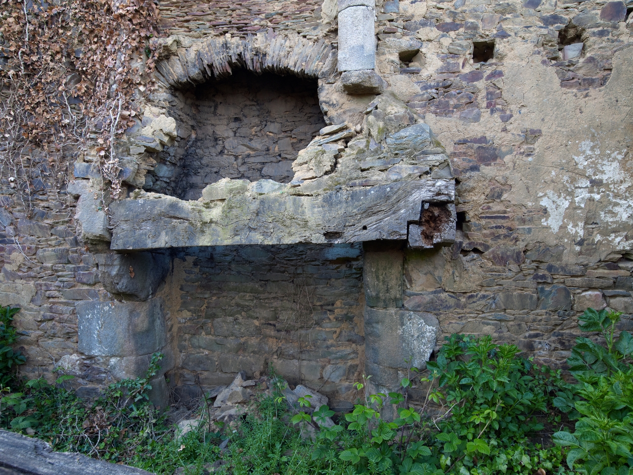 Poullévénez. Ancienne ferme ruinée, 1ère moitié du 16e siècle. Pignon nord. Cheminée du rez-de-chausséeImmatriculation