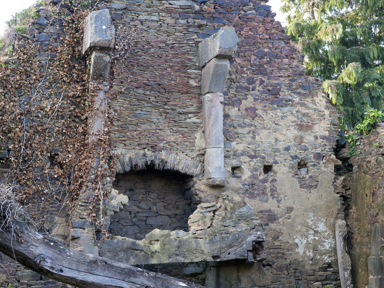 Poullévénez. Ancienne ferme ruinée, 1ère moitié du 16e siècle. Pignon nord. Cheminée de l'étageImmatriculation