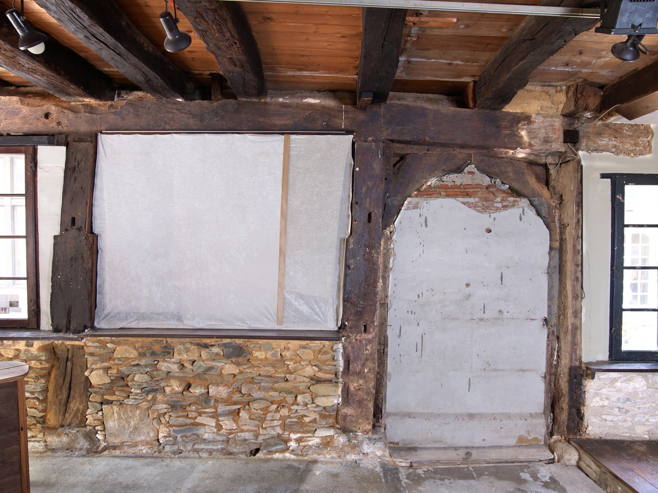 Rez-de-chaussée. Mur gouttereau nord. Porte centrale et poteau d'huisserieImmatriculation