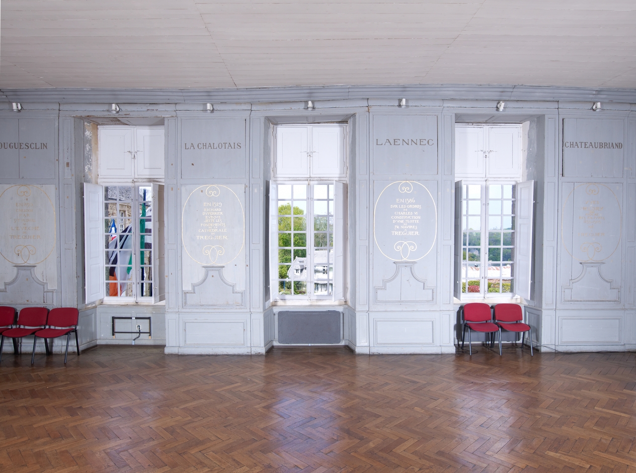 Tréguier, boulevard Anatole Le Braz : palais épiscopal aujourd'hui mairie et bibliothèque, salle du conseil, fenêtres nord et boiseriesImmatriculation