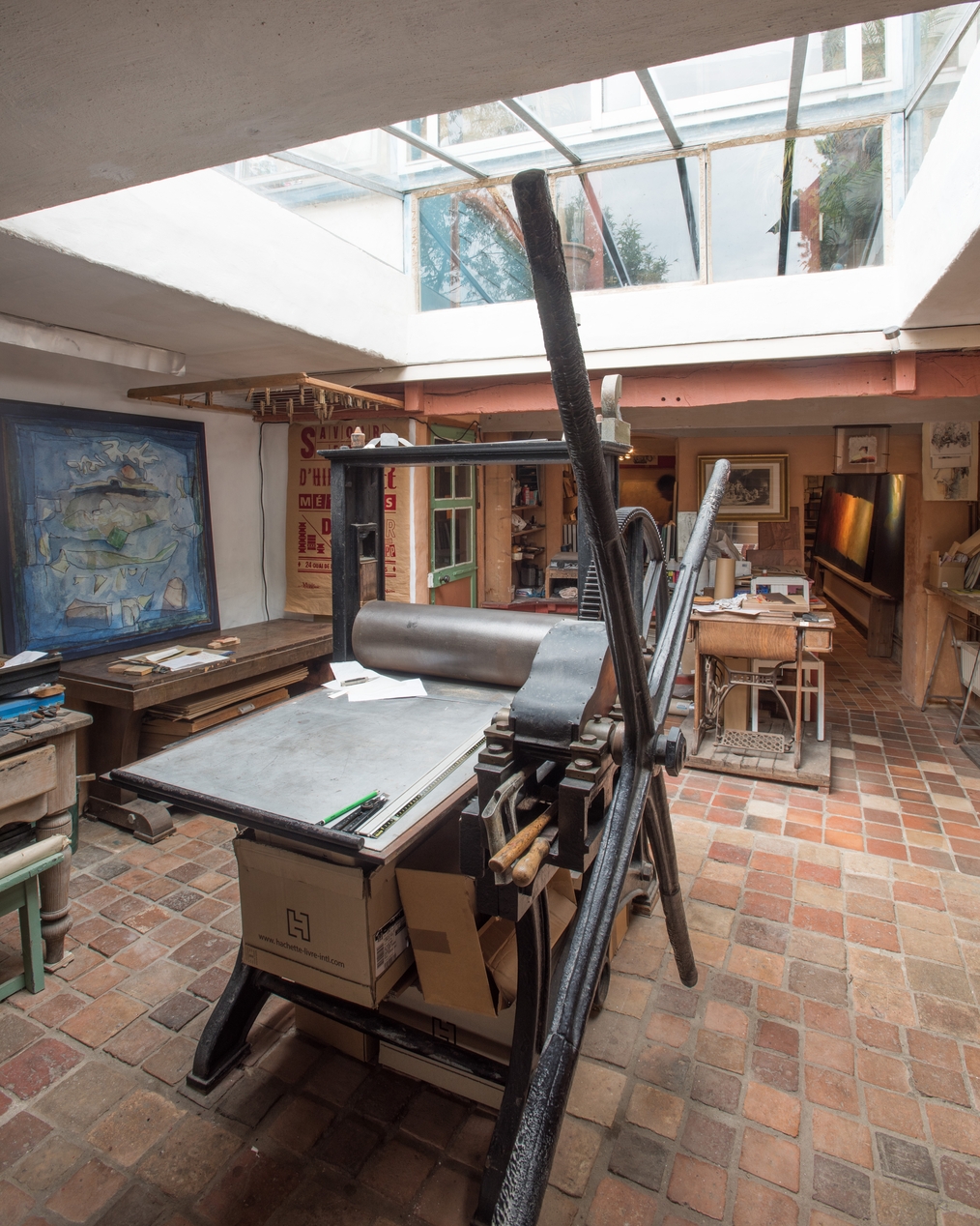 Atelier construit à l'arrière de la maison. Presse typographique. Vue généraleImmatriculation