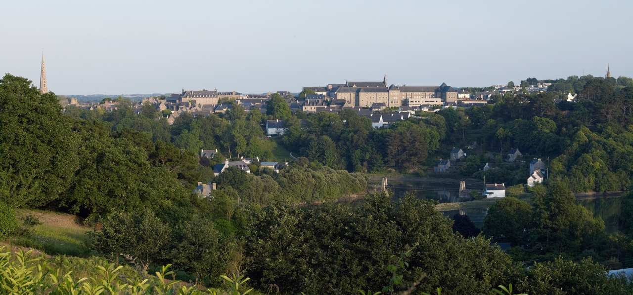 Tréguier : vue générale de la ville depuis les hauteurs de Plouguiel. L'ancien "Petit Séminaire" ou collège ecclésiastique de Tréguier devenu Lycée Joseph Savina émerge de la ville : il a été reconstruit par l'architecte Henri Mellet en 1897Immatriculation