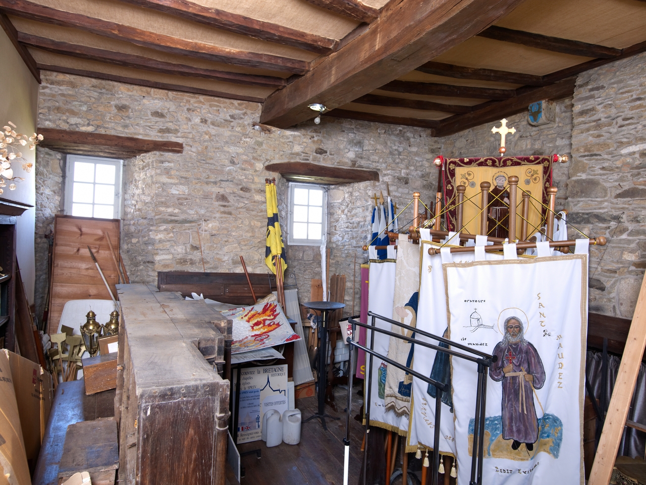 Tréguier : sacristie de la cathédrale Saint-Tugdual, aile sud-est, premier étage, pièce avec cheminée communicant avec l'escalier au nord et la sacritie au sudImmatriculation