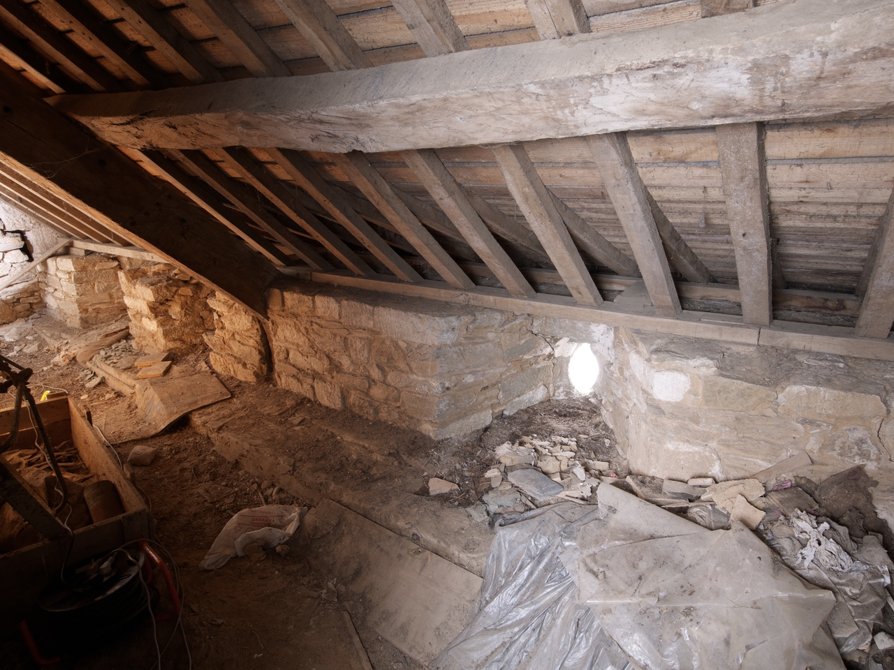 Tréguier, boulevard Anatole Le Braz : palais épiscopal aujourd'hui mairie et bibliothèque, aile sud-est, étage de comble, détail du chemisage du bâtimentImmatriculation