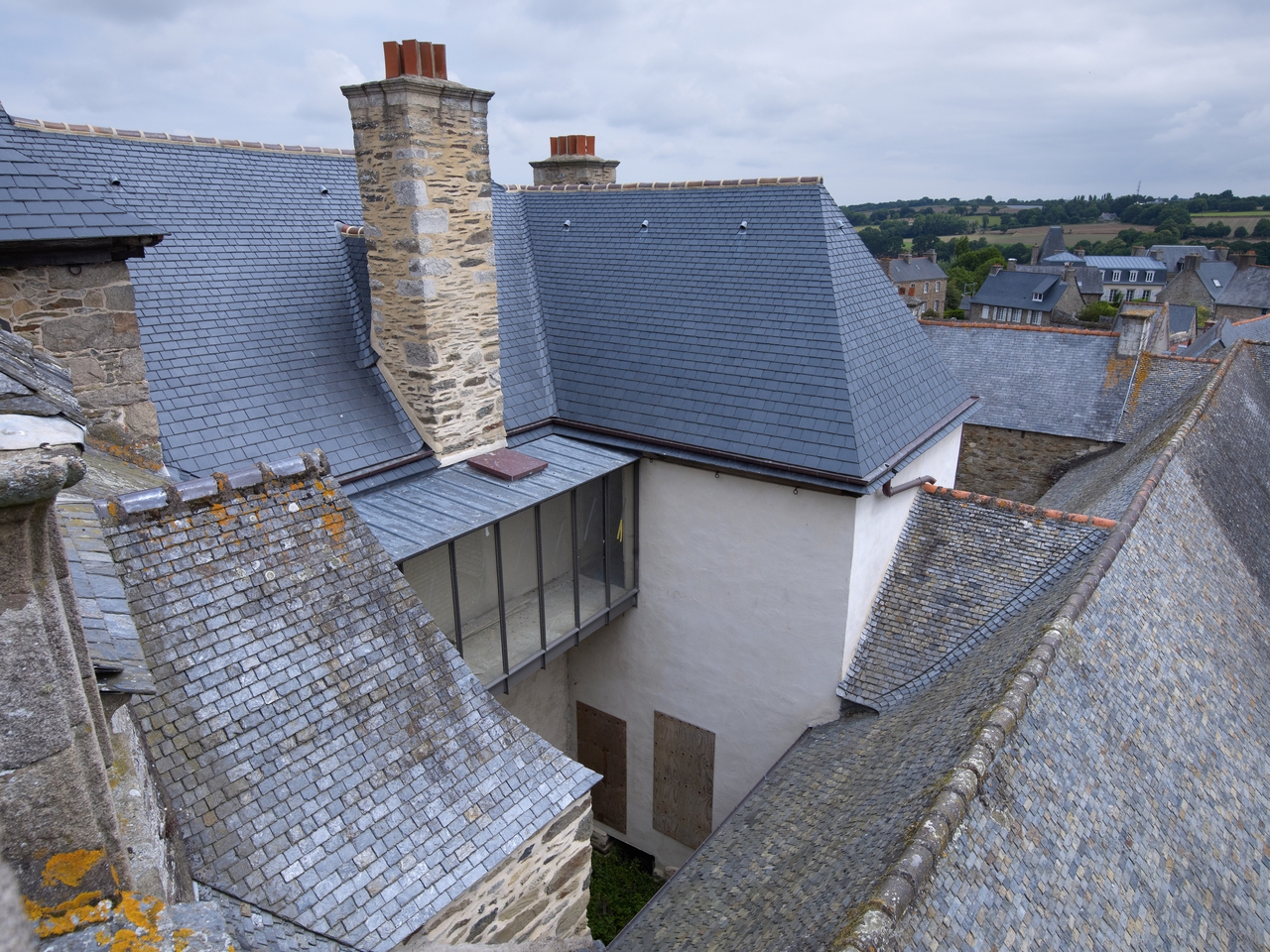 Tréguier, boulevard Anatole Le Braz : palais épiscopal aujourd'hui mairie et bibliothèque, pavillon est (chambre de l'évêque) et aile nord-est, élévation sud sur couretteImmatriculation