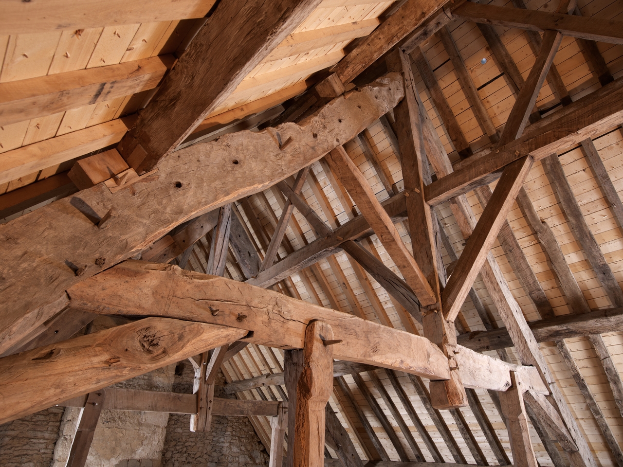 Tréguier, boulevard Anatole Le Braz : palais épiscopal aujourd'hui mairie et bibliothèque, corps principal, étage de comble de l'antichambre, charpenteImmatriculation