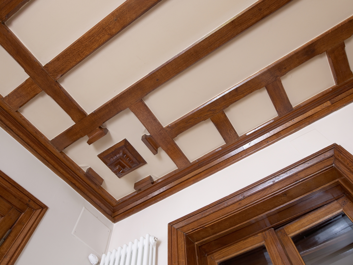 Salon. Plafond. Détail d'un écoinçon d'angle avec motif de cul-de-lampeImmatriculation