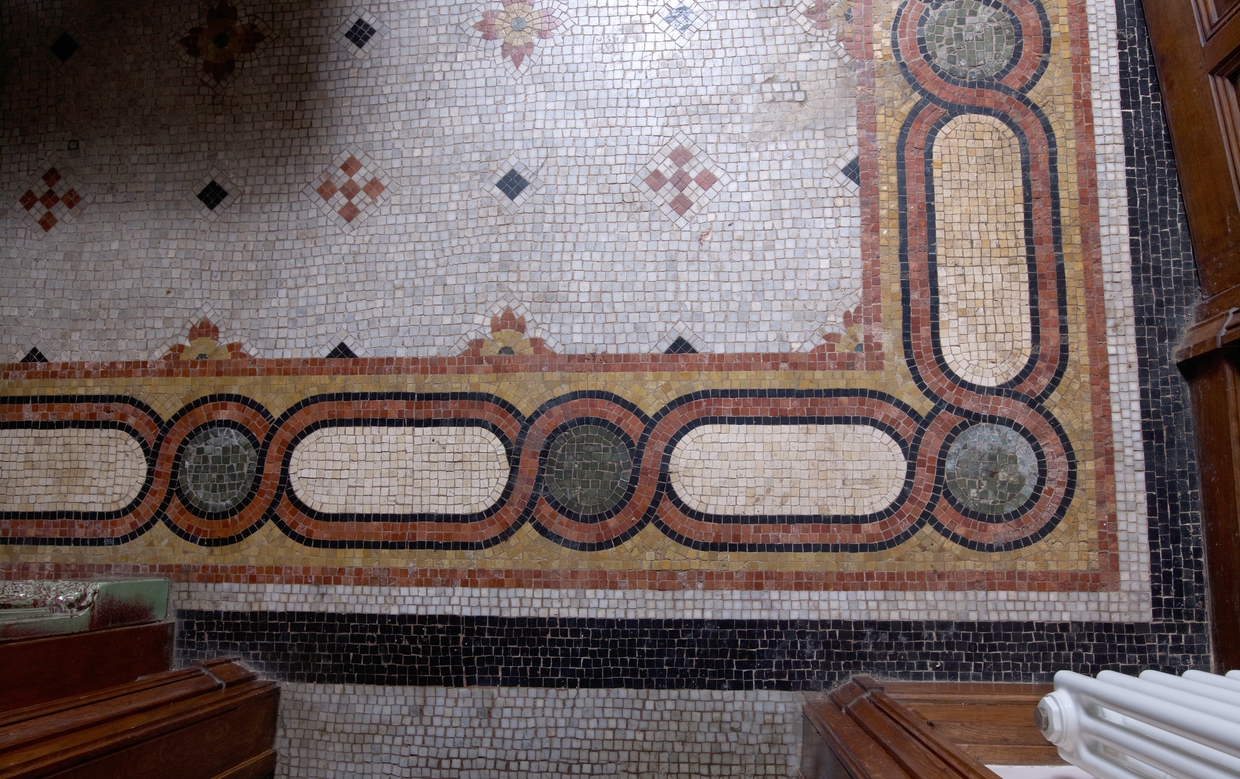 Salon. Sol en mosaïque de marbre. Détail de bordureImmatriculation