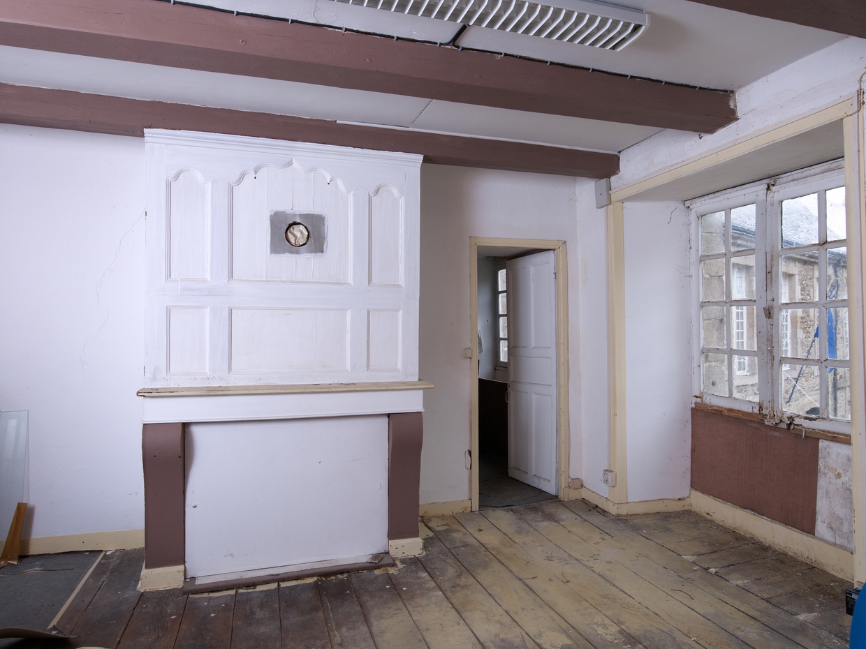 Tréguier, boulevard Anatole Le Braz : palais épiscopal aujourd'hui mairie et bibliothèque, aile sud-ouest, premier étage. Au centre, cheminée et boiseriesImmatriculation