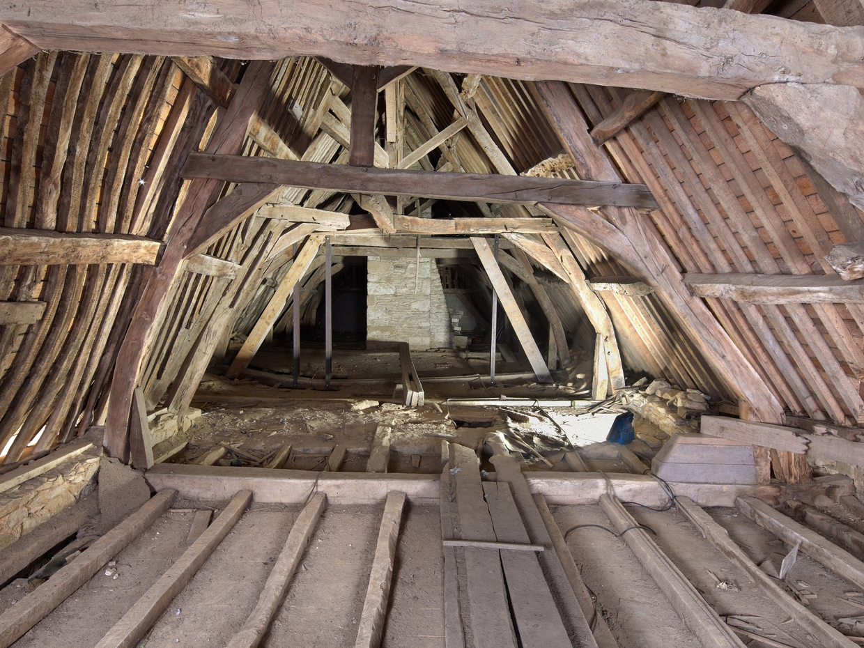 Tréguier, boulevard Anatole Le Braz : palais épiscopal aujourd'hui mairie et bibliothèque, aile nord-ouest, étage de comble, charpenteImmatriculation