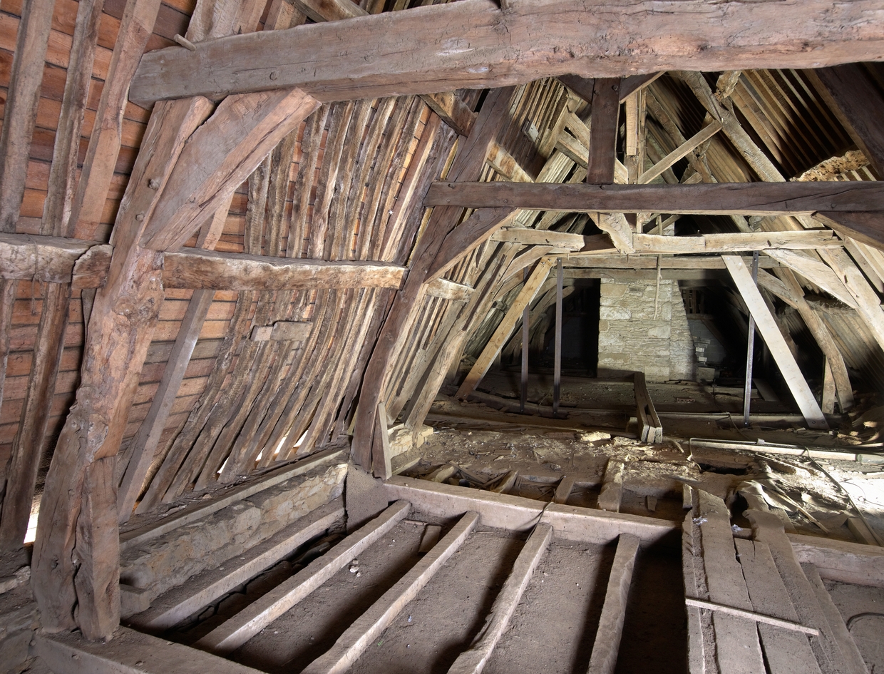 Tréguier, boulevard Anatole Le Braz : palais épiscopal aujourd'hui mairie et bibliothèque, aile nord-ouest, étage de comble, charpenteImmatriculation