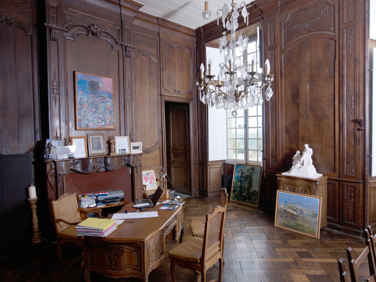 Tréguier, boulevard Anatole Le Braz : palais épiscopal aujourd'hui mairie et bibliothèque, aile nord-ouest, premier étage, pièce avec cheminée et boiseries (actuel bureau du maire)Immatriculation