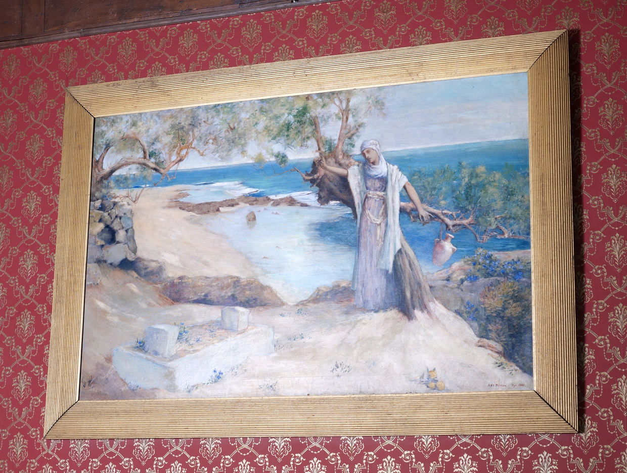 Tréguier, boulevard Anatole Le Braz : palais épiscopal aujourd'hui mairie et bibliothèque, aile nord-ouest, premier étage, actuel bureau du maire, tableau de Ary Renan (fils de Ernest Renan), Pyr, 1886Immatriculation