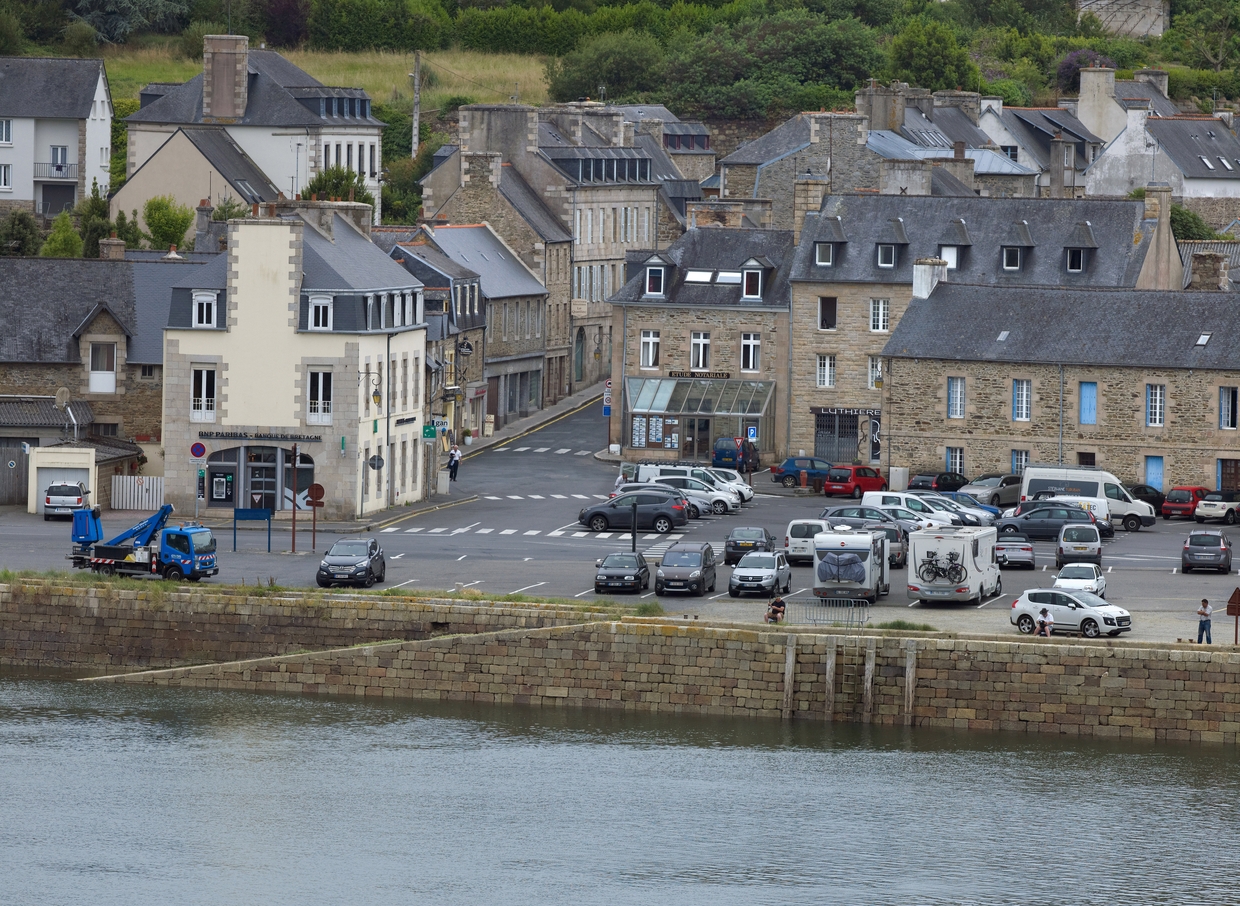 Tréguier : vue générale du port et du front portuaire, place du Général de Gaulle. Au premier plan, la caleImmatriculation