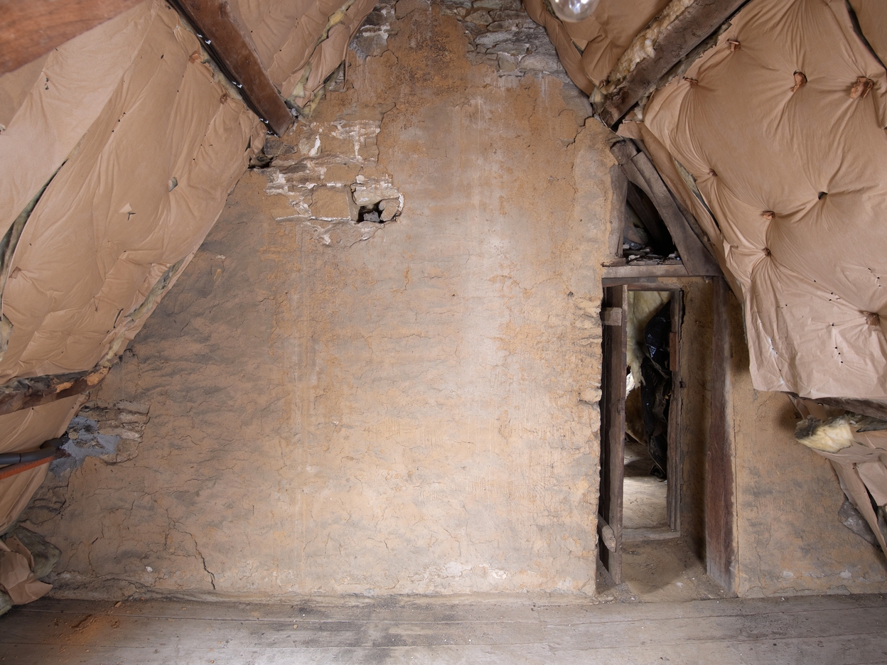 Combles. Partie Est. Détail du mur de refendImmatriculation