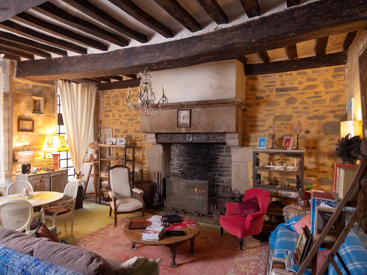 Tréguier, 11 rue Colvestre : maison dite "Hôtel de Tournemine", rez-de-chaussée, cheminée engagée dans le pignon estImmatriculation