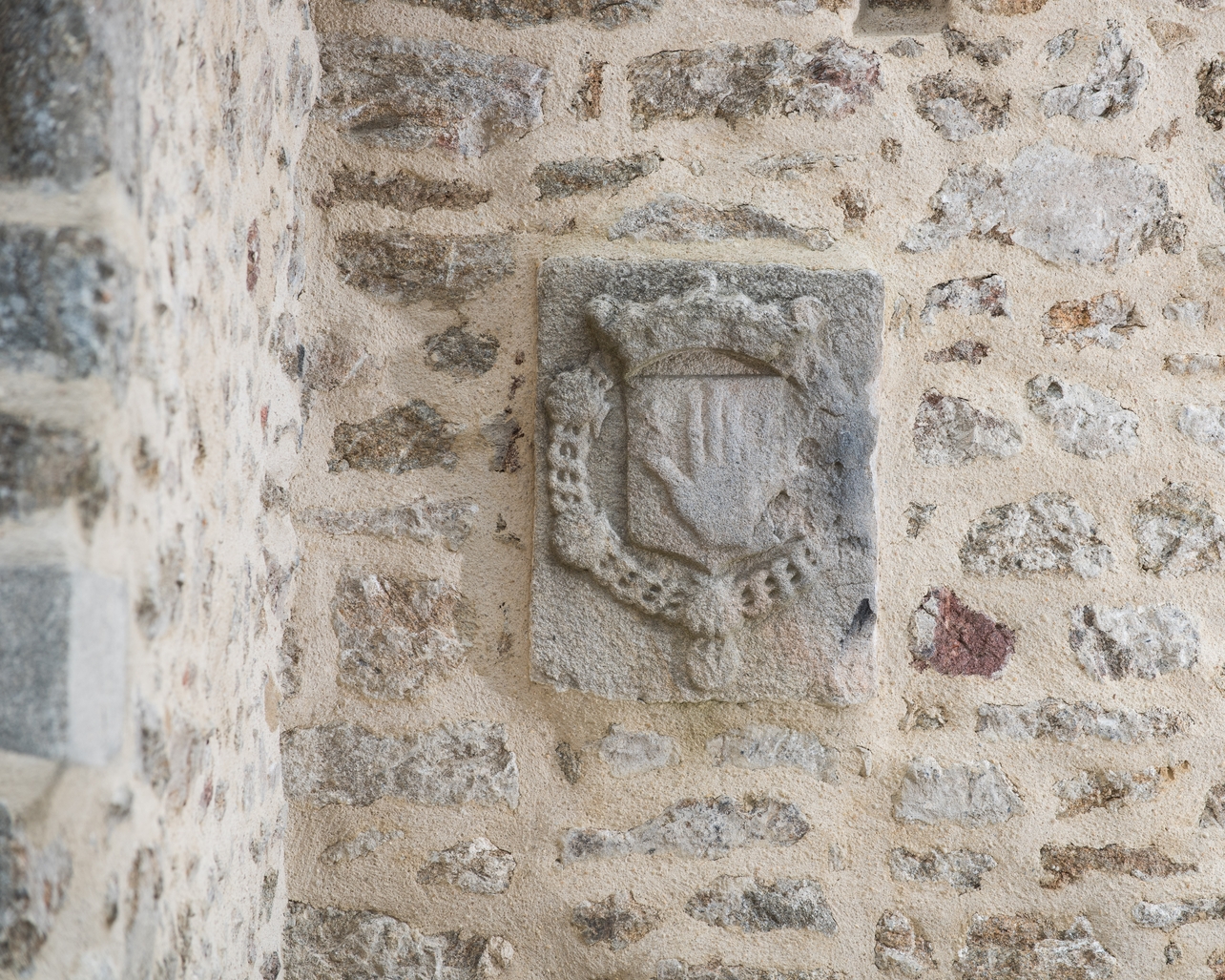 Façade ouest, détail, blason des Marot des AlleuxImmatriculation