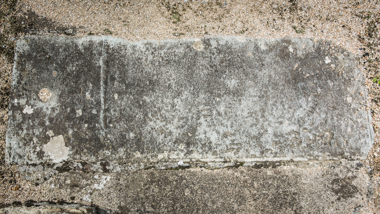 Pierre tombale placée devant la porte du bras Sud du transeptImmatriculation
