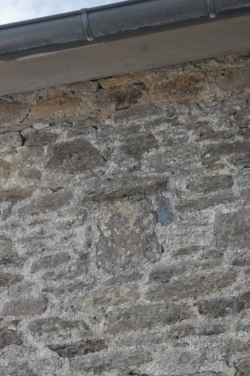 L'église. Chevet. Détail d'un blason bûchéImmatriculation