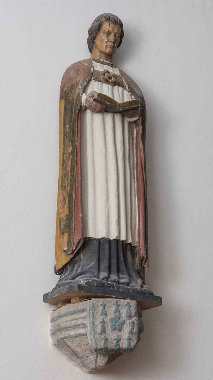 Choeur de l'église. Statue de saint Mérin, bois polychrome, 17e siècle (tête ajoutée au 19e siècle)Immatriculation