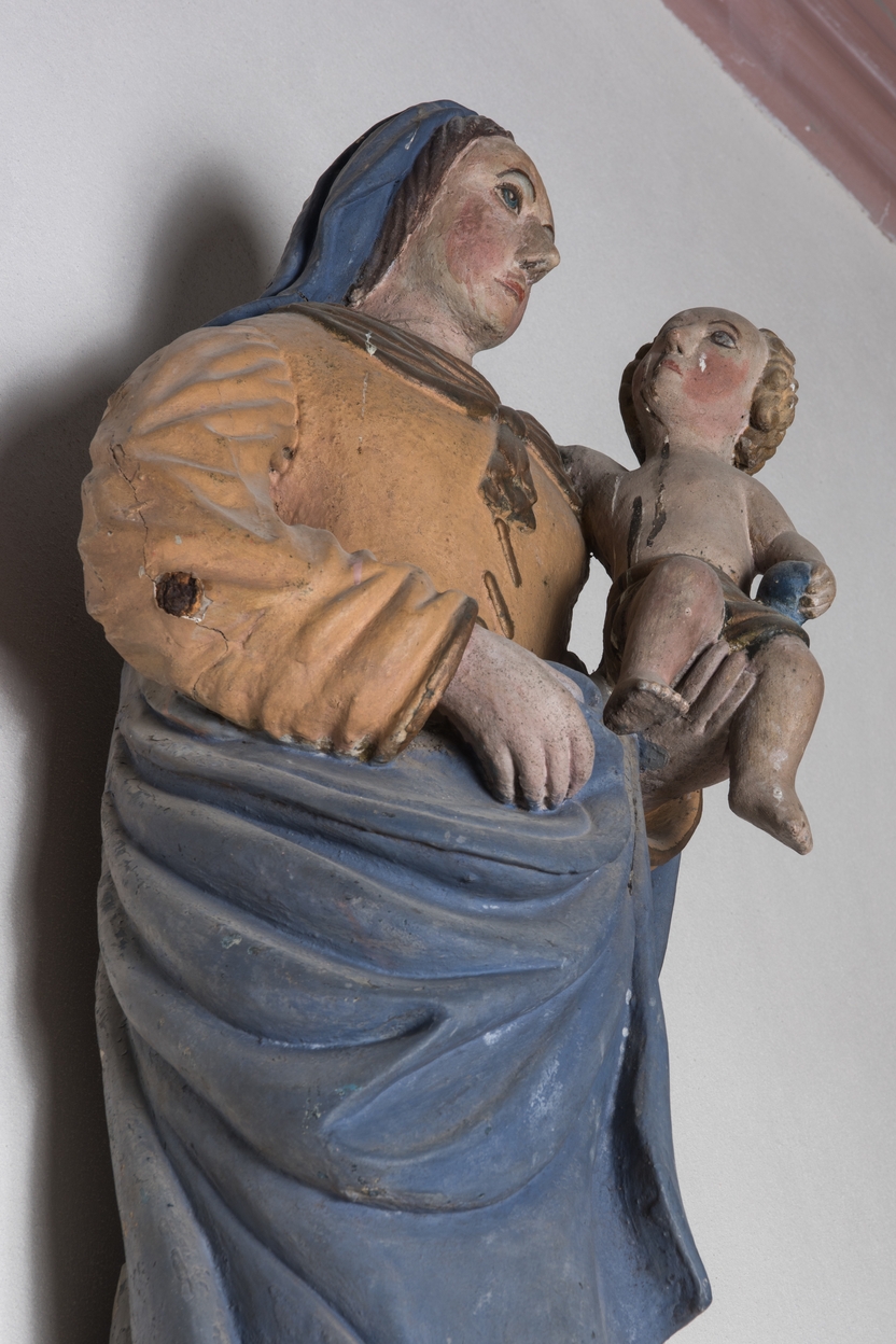 Bras sud du transept. Statue de la Vierge à l'Enfant en bois polychrome. DétailImmatriculation