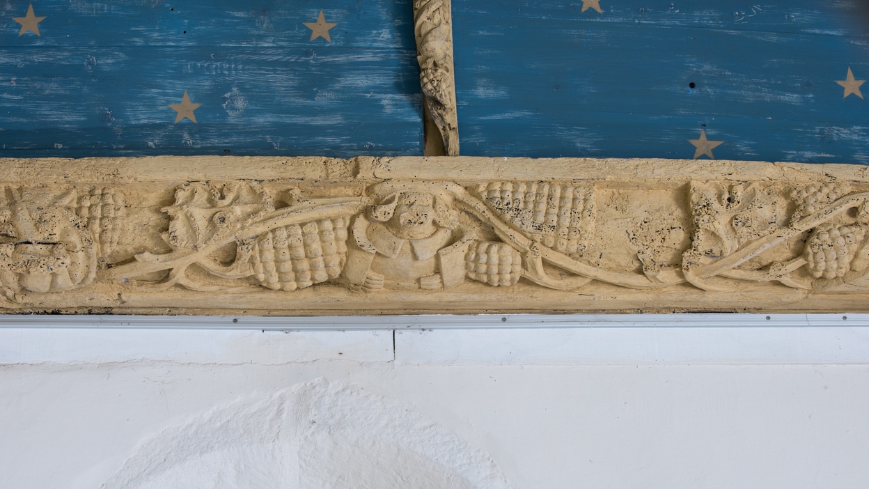 Sablières : pampres de vigne, personnage grimaçant.Immatriculation