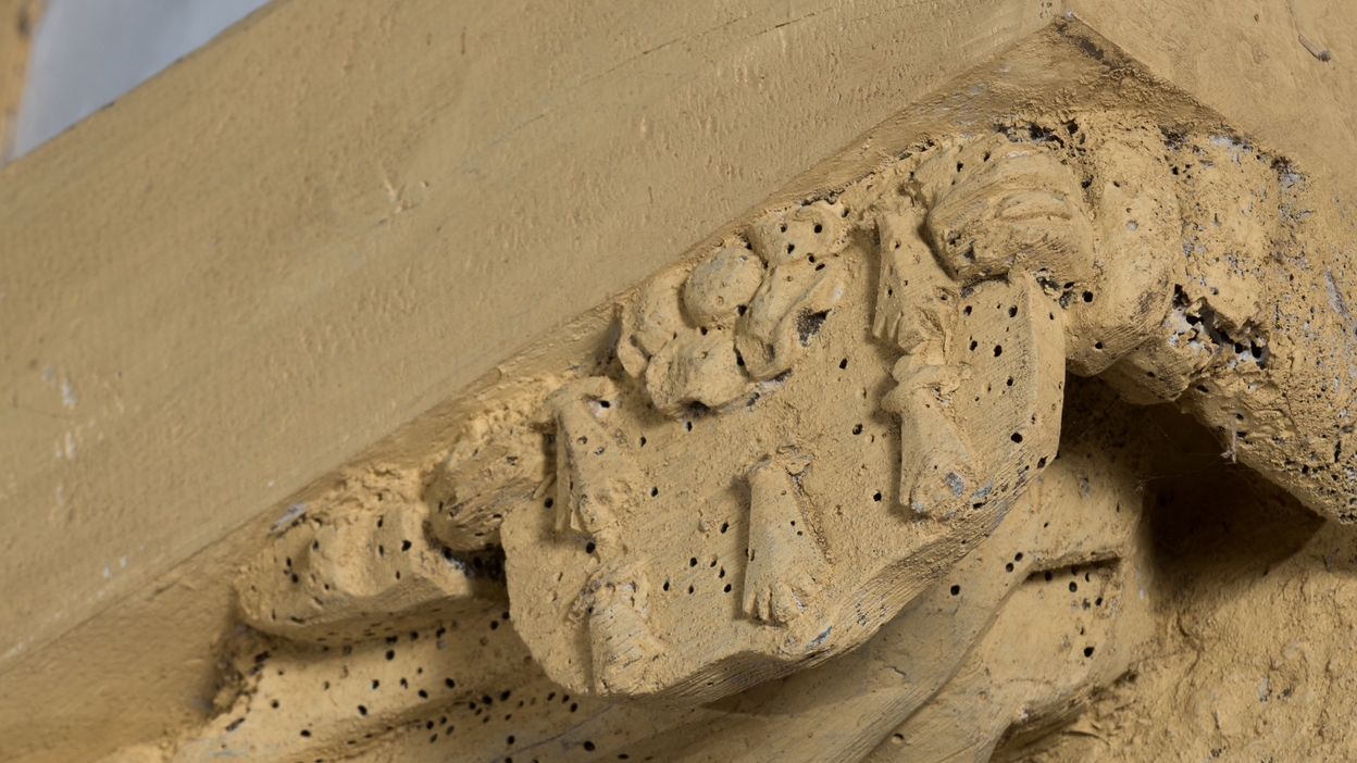 Sablières, blochet angle nord est: armoiries Lagadec.Immatriculation