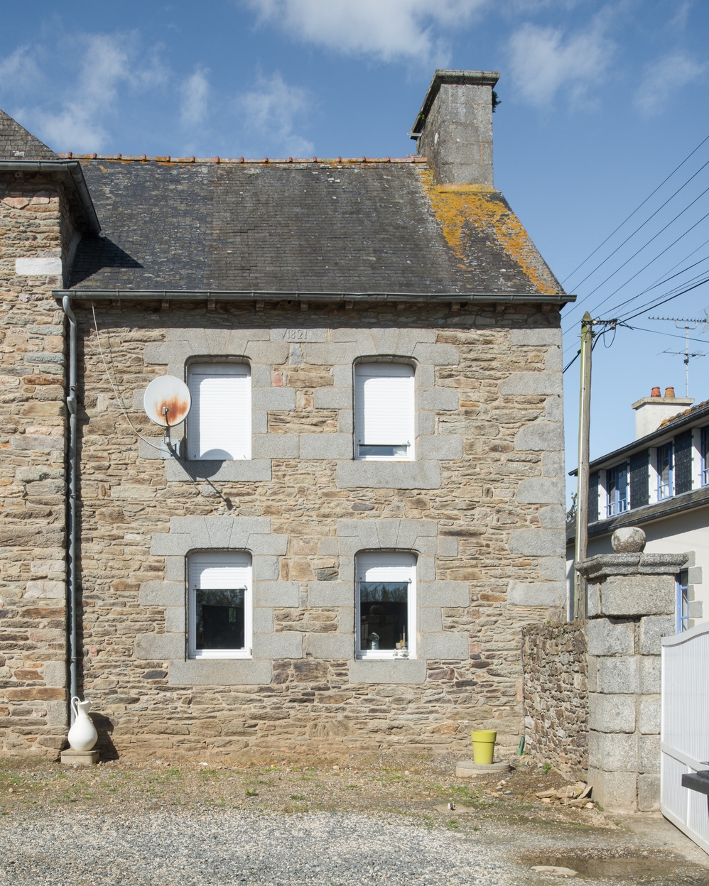 Partie Est de la façade Sud remontée en 1821, fenêtres à linteau clavéImmatriculation
