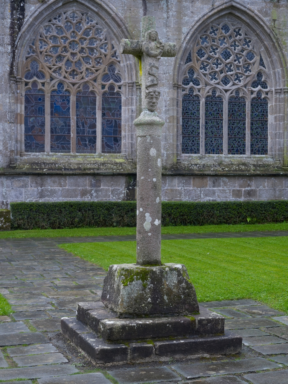 Tréguier : cloître de la cathédrale, croix en granite provenant de Keralio à PlouguielImmatriculation