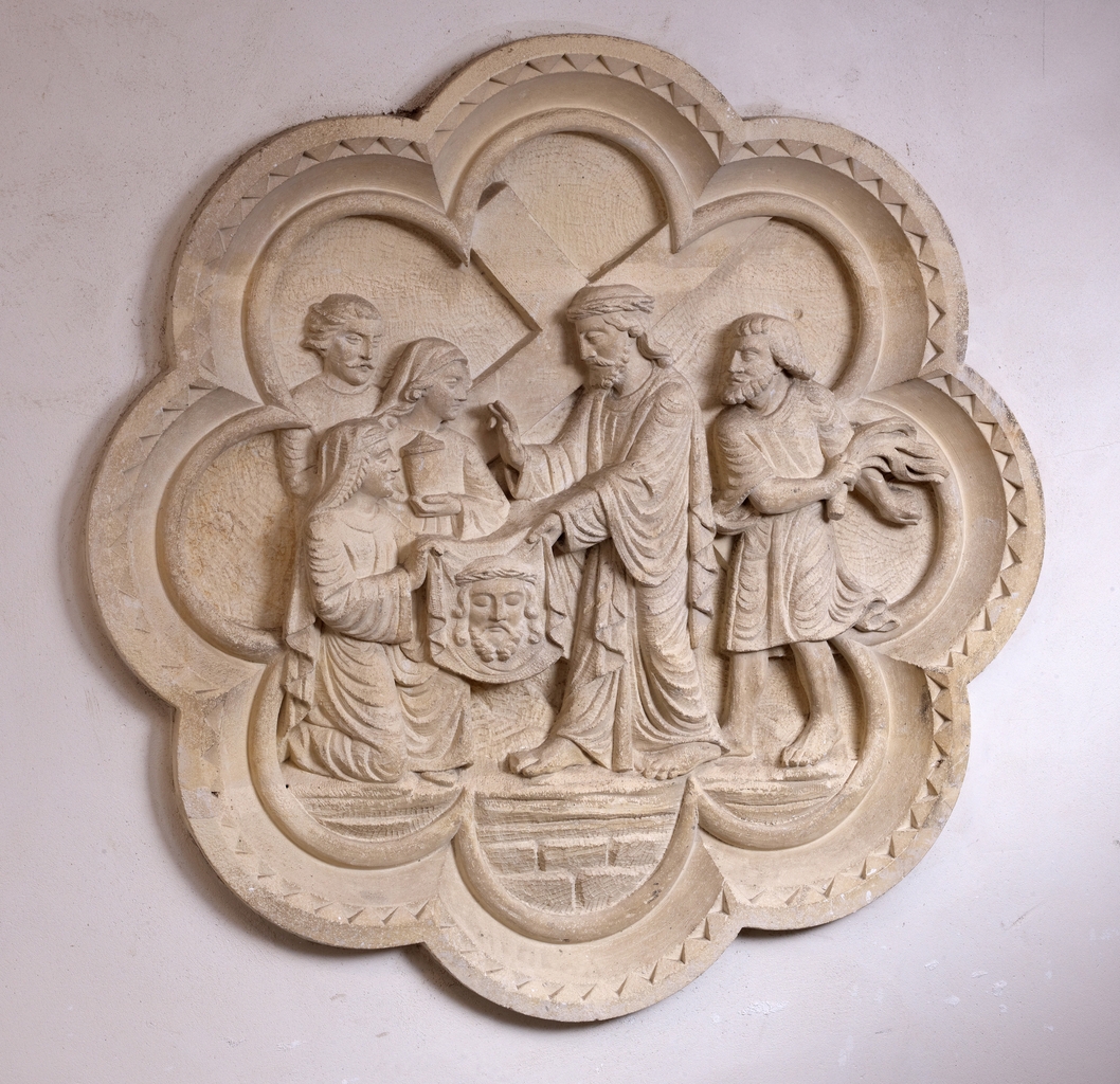 Tréguier, place de la République : chapelle du Petit Séminaire aujourd'hui Théâtre de l'Arche, chemin de croix de Louis Savary daté 1896, sainte Véronique essuie le visage de JésusImmatriculation