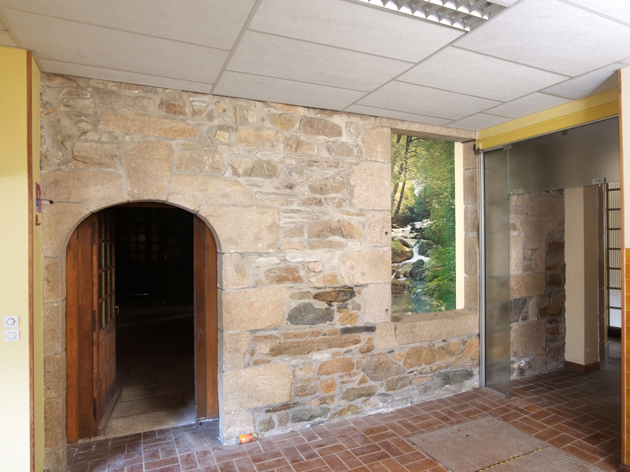 Maison conventuelle. Porte d'entrée du vestibule ouest depuis la petite cour nord (aujourd'hui partiellement bâtie). A droite vestige de la porte d'entrée de l'aile ouestImmatriculation