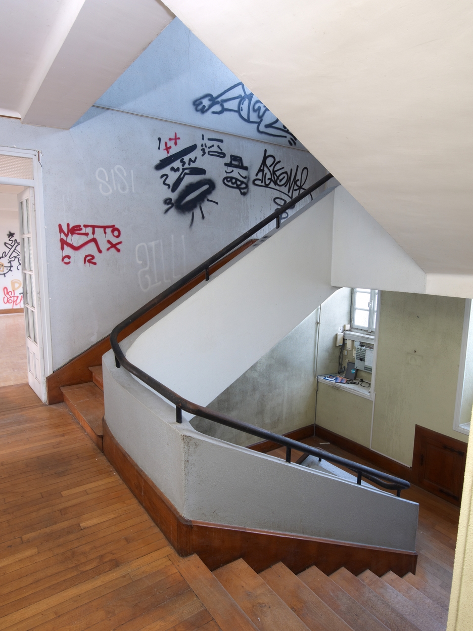 Maison conventuelle. Escalier central en béton. Vue générale depuis le 1er étageImmatriculation