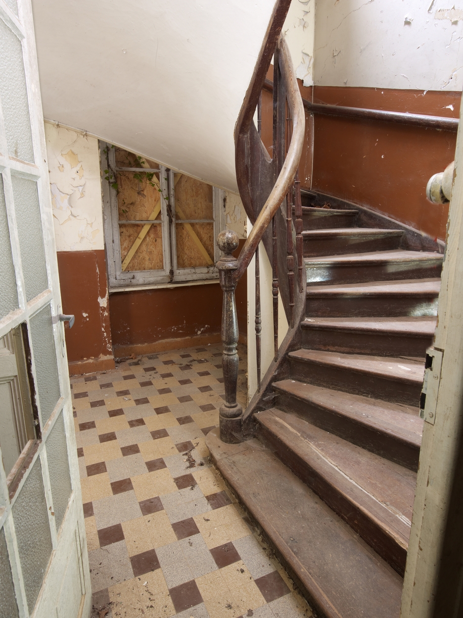 Rez-de-chaussée. Départ de l'escalierImmatriculation