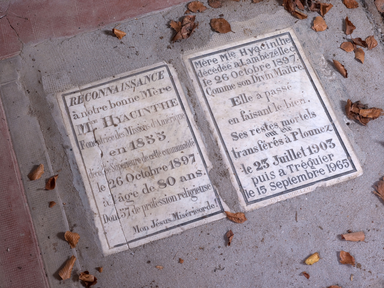 Chapelle du jardin. Pierre tombale. Détail de l'épitapheImmatriculation