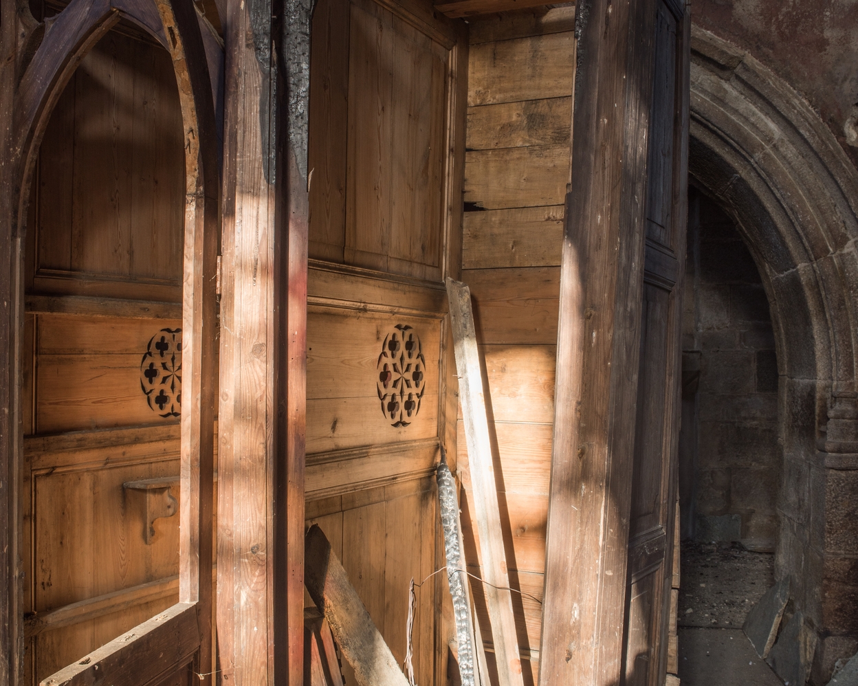 Trémel, le bourg : église paroissiale Notre-Dame, vue intérieure (après l'incendie du 21 juin 2016)Immatriculation