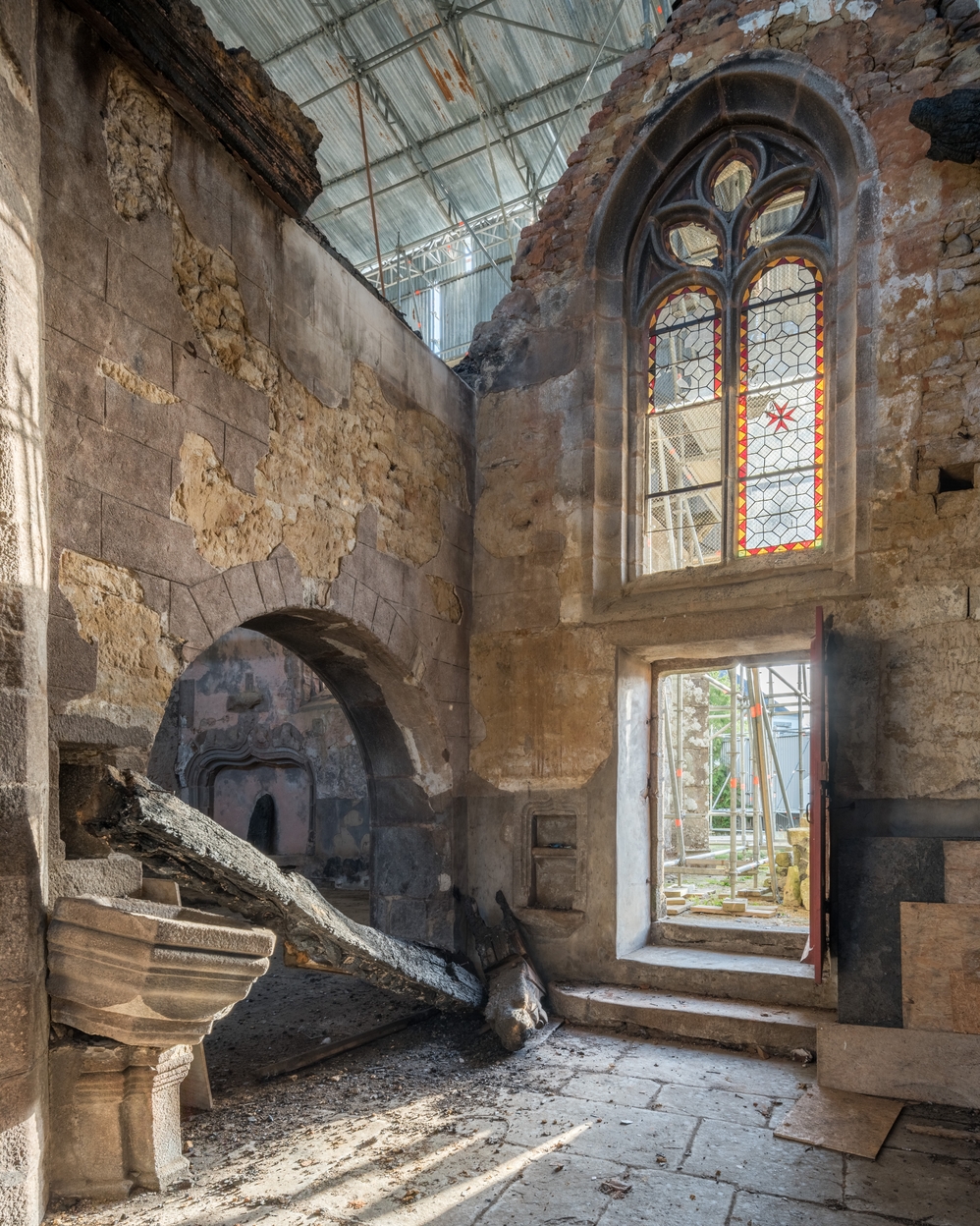 Trémel, le bourg : église paroissiale Notre-Dame, vue intérieure (après l'incendie du 21 juin 2016)Immatriculation