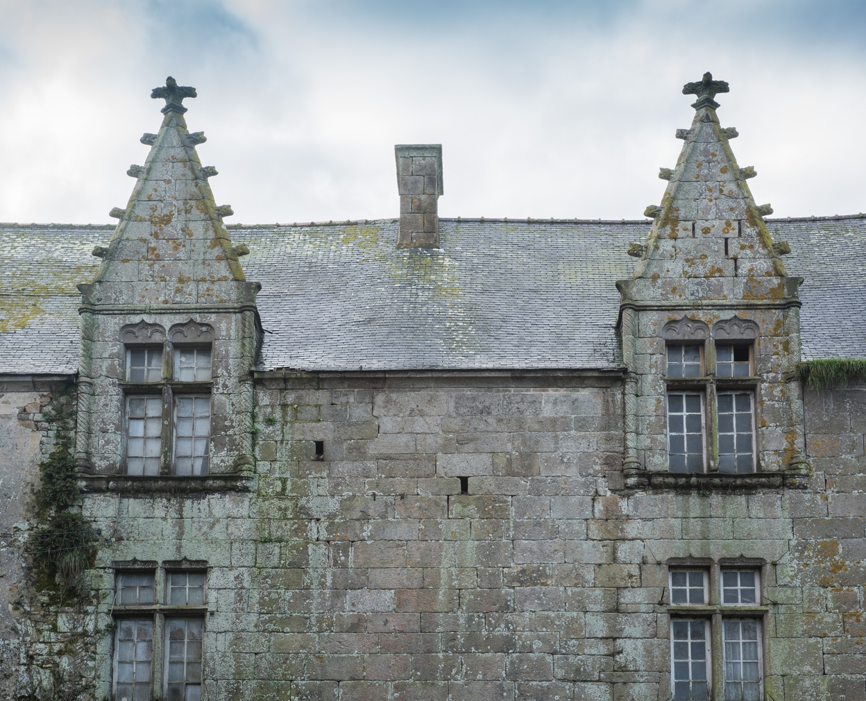 Trémel : manoir haut de Kermerzit, élévation antérieure orientée vers le nord, détail des deux lucarnes des comblesImmatriculation
