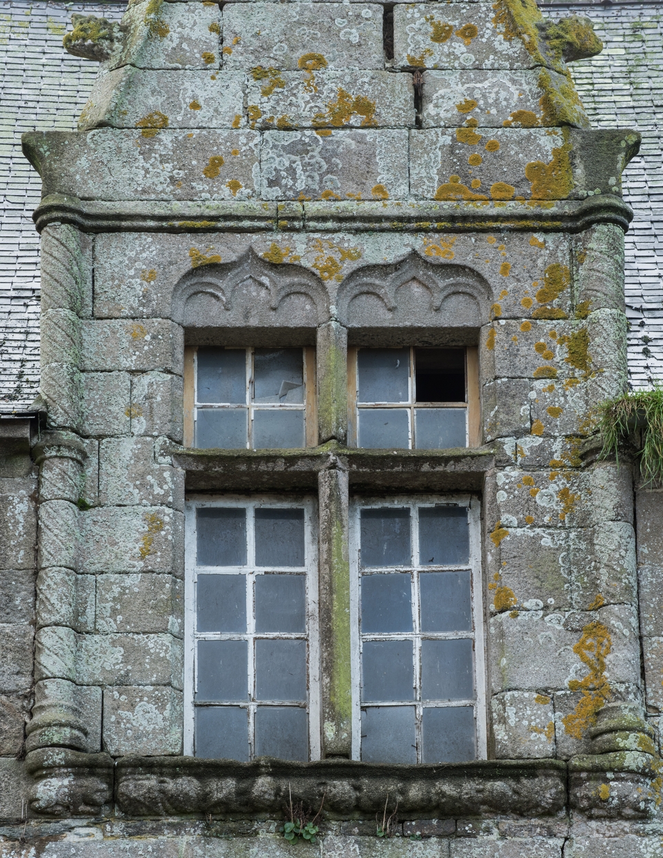 Trémel : manoir haut de Kermerzit, élévation antérieure orientée vers le nord, détail de l'une des deux lucarnes des comblesImmatriculation