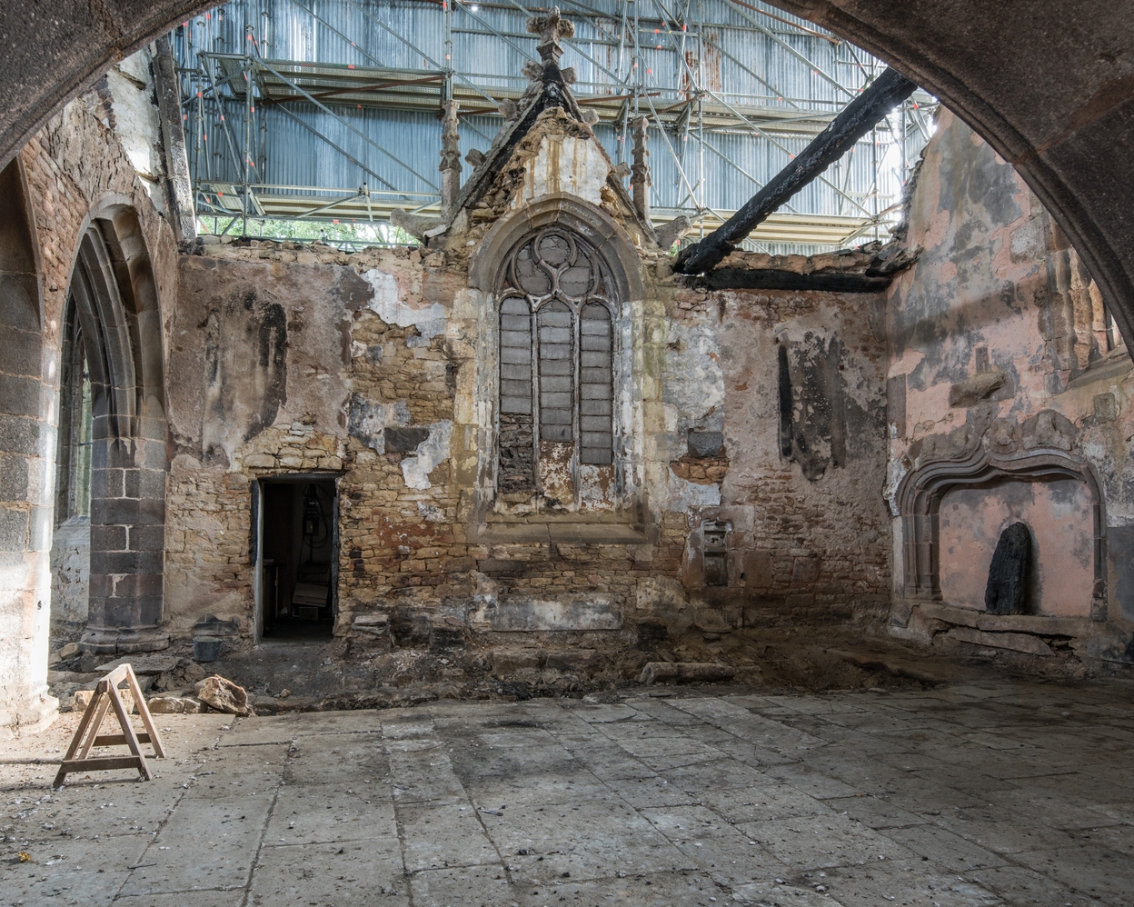 Trémel, le bourg : église paroissiale Notre-Dame, vue intérieure (après l'incendie du 21 juin 2016)Immatriculation