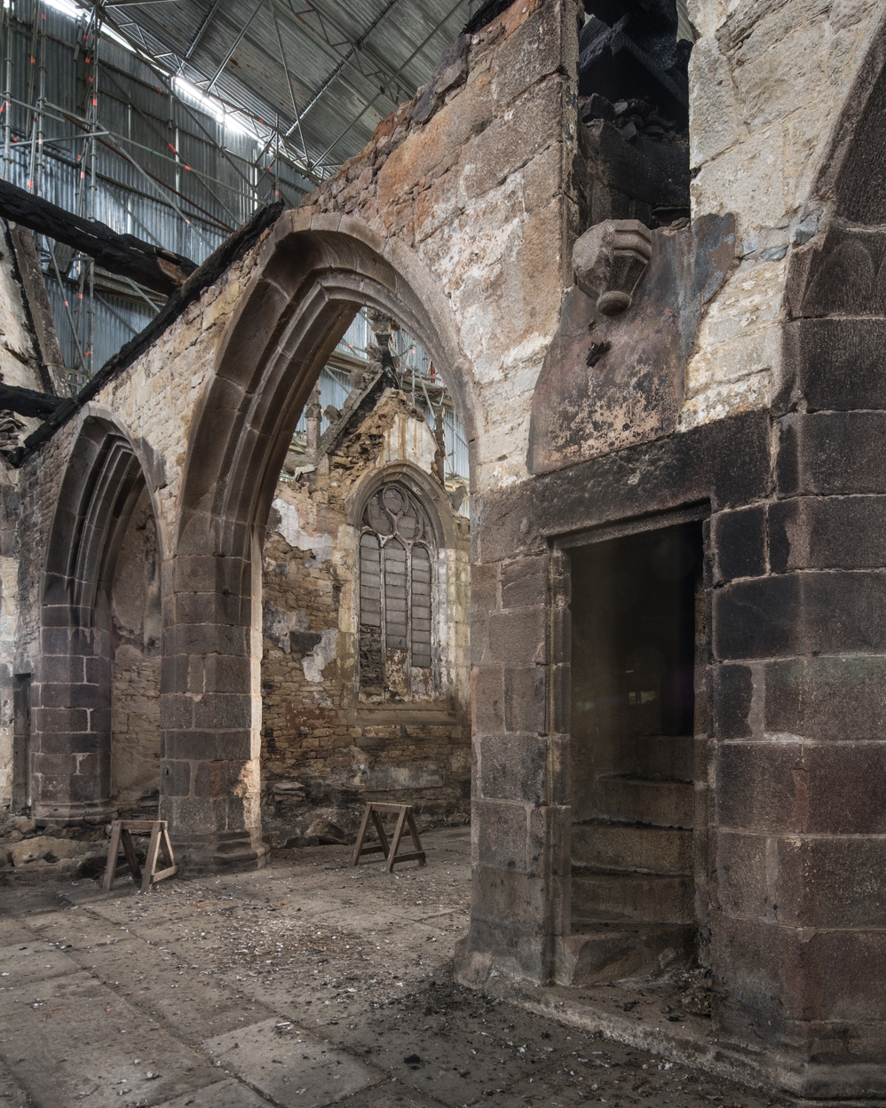 Trémel, le bourg : église paroissiale Notre-Dame, vue intérieure (après l'incendie du 21 juin 2016)Immatriculation