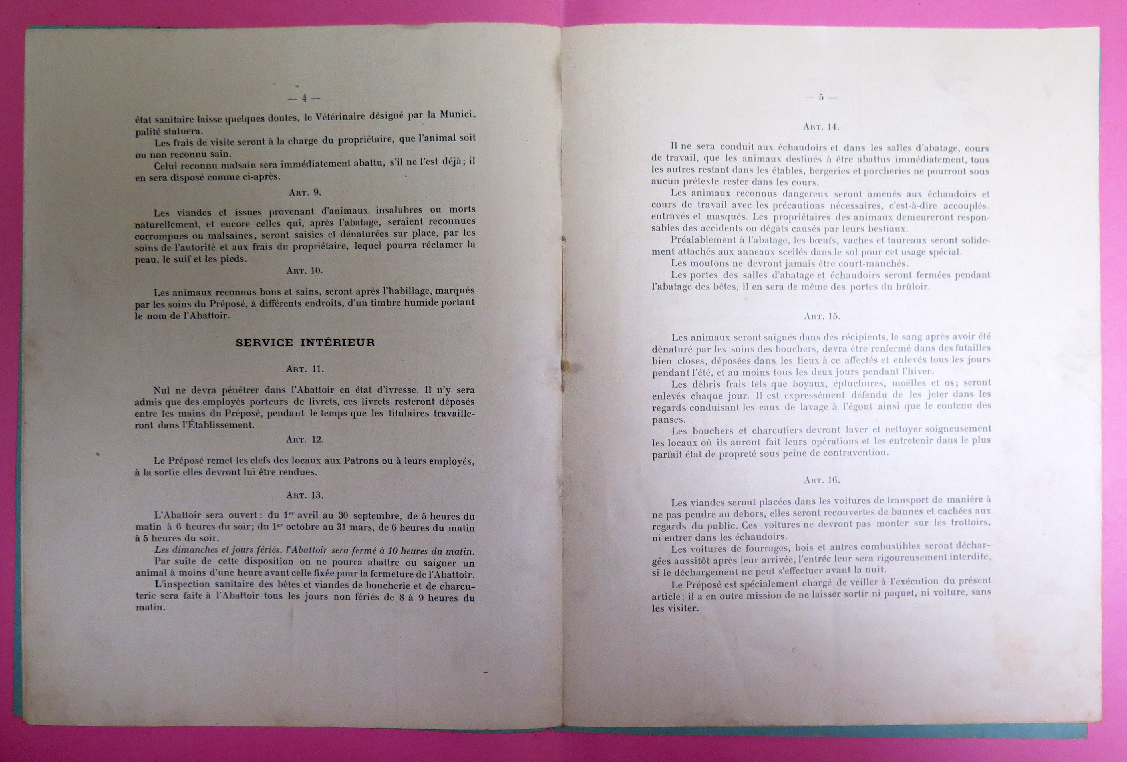 Réglement administratif de l'abattoir de la ville de Tréguier par la Société générale des abattoirs municipaux de France, 9 novembre 1908 (Archives municipales de Tréguier, 4F15)