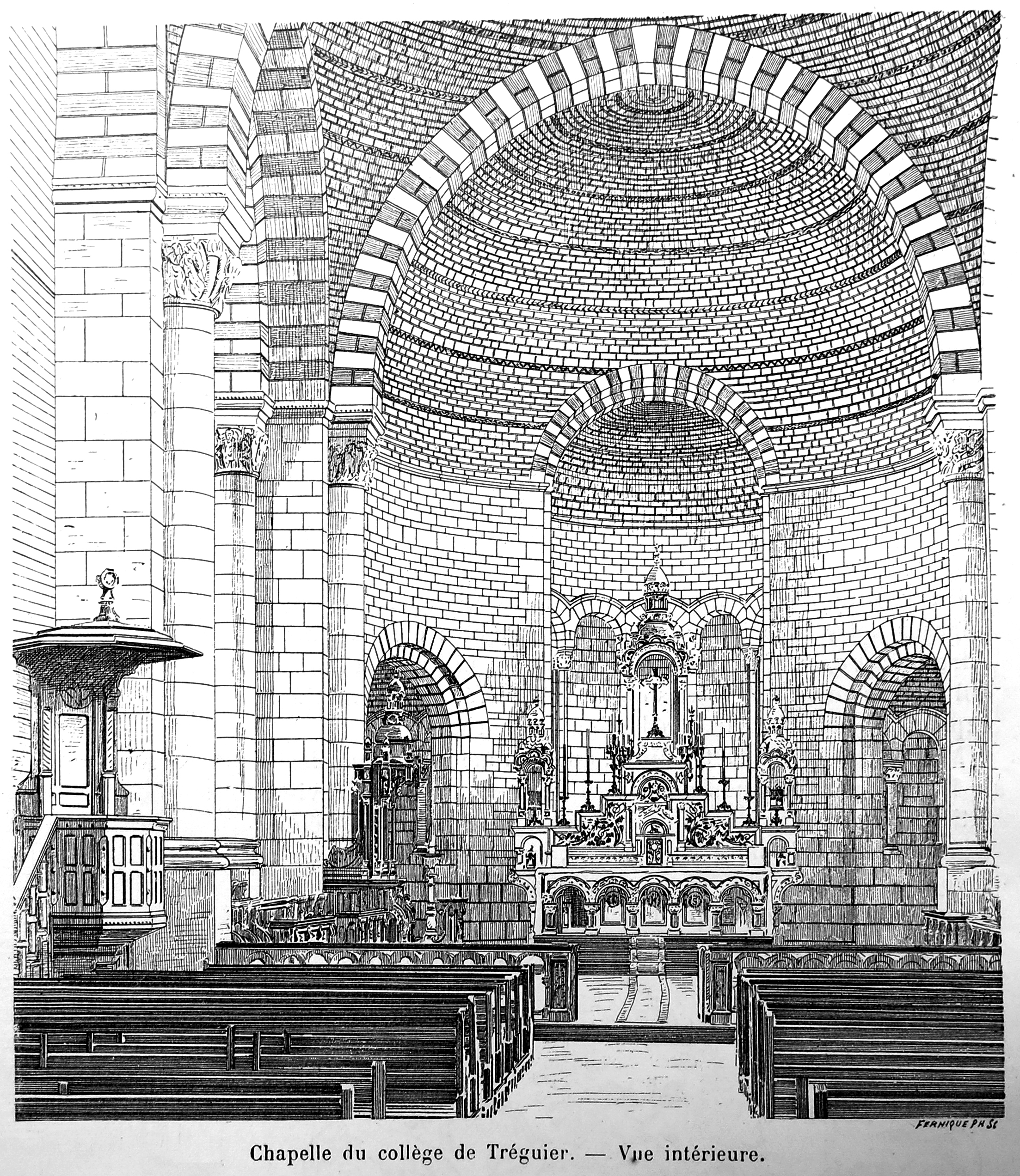 Tréguier : vue intérieure de la chapelle du petit séminaire, planche extraite de L'Architecture, Journal hebdomadaire de la Société centrale des architectes français, 29 mars 1902 (Archives municipales de Tréguier, C1)Immatriculation
